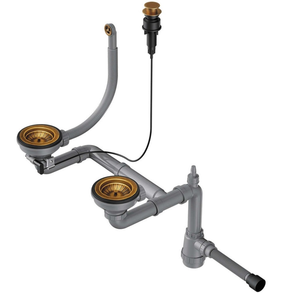 Арматура для полуторачашевых моек Omoikiri с клапаном-автомат Латунь античная 4957093