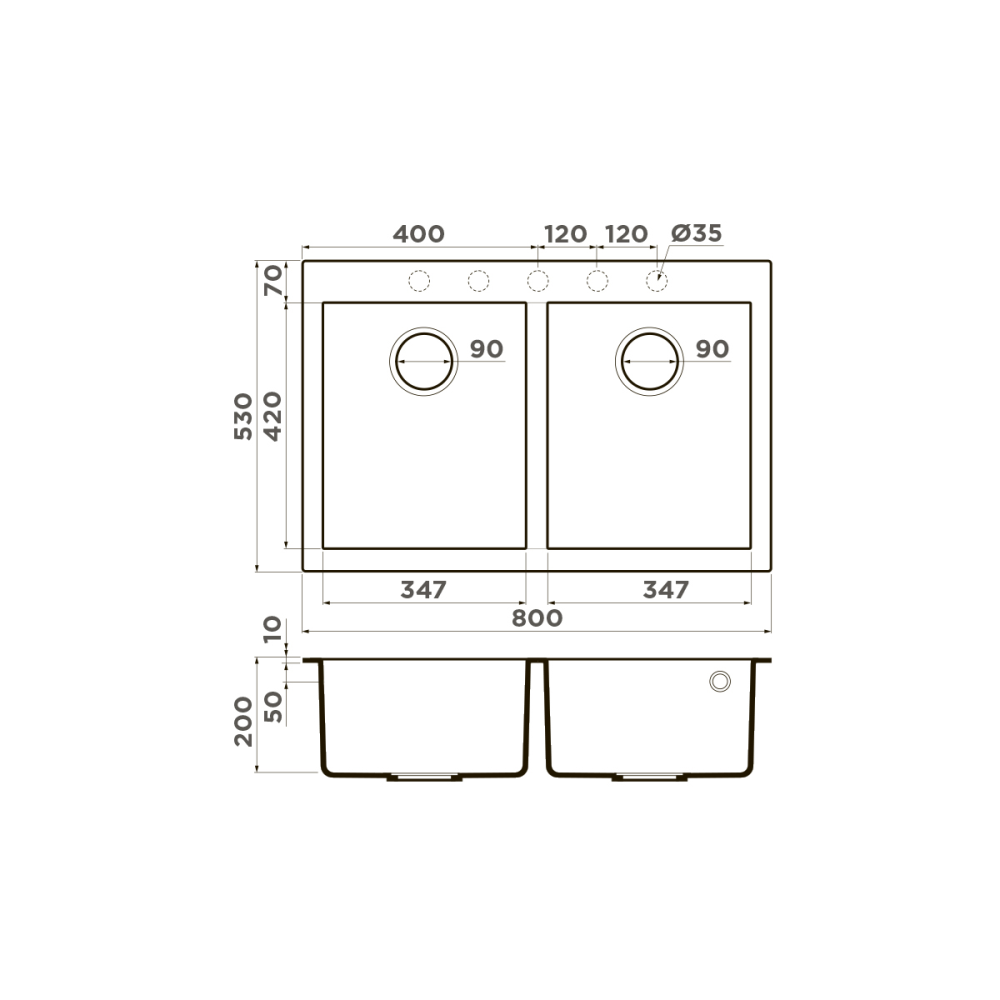 Мойка кухонная Omoikiri из коллекции Bosen 80-2-GR имеет размеры 800х530 мм., изготовлена из искусственного гранита. Форма — прямоугольная, две чаши без отверстия для смесителя. Сифон в комплекте. Ширина чаши 34,7. Врезной монтаж.