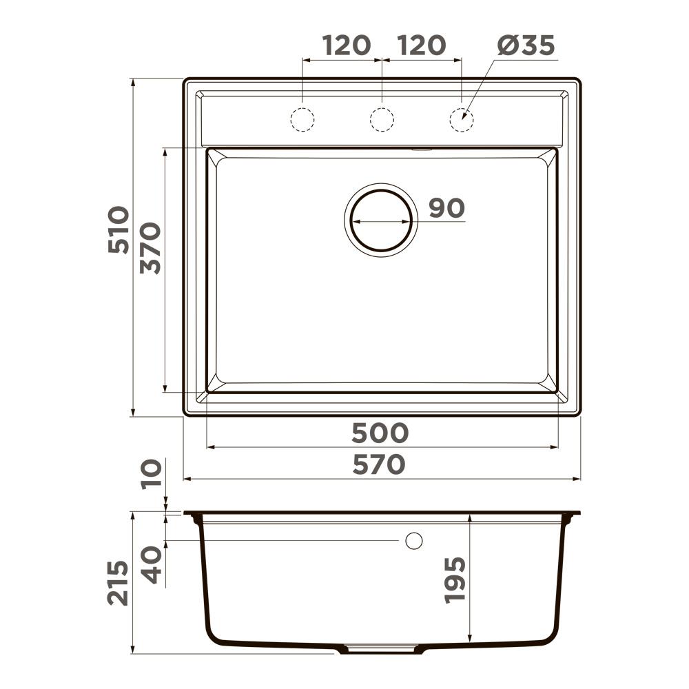 Мойка кухонная Omoikiri из коллекции Daisen 57-BL имеет размеры 570х510 мм., изготовлена из искусственного гранита. Форма — прямоугольная, одна чаша без отверстия для смесителя. Сифон в комплекте. Ширина чаши 50. Врезной монтаж