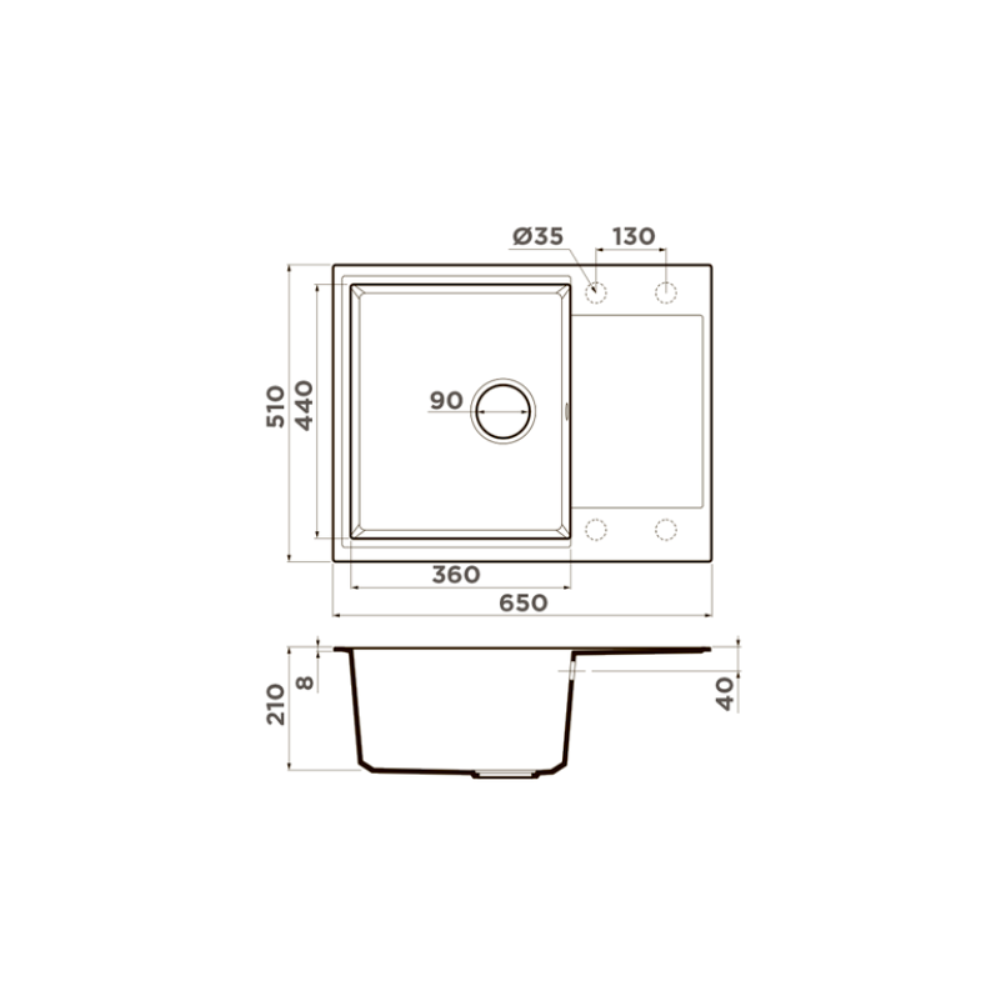 Мойка кухонная Omoikiri из коллекции Daisen 65T-PL имеет размеры 650х510 мм., изготовлена из искусственного гранита. Форма — прямоугольная, одна чаша без отверстия для смесителя. Сифон в комплекте. Ширина чаши 36. Врезной монтаж. Имеется крыло.