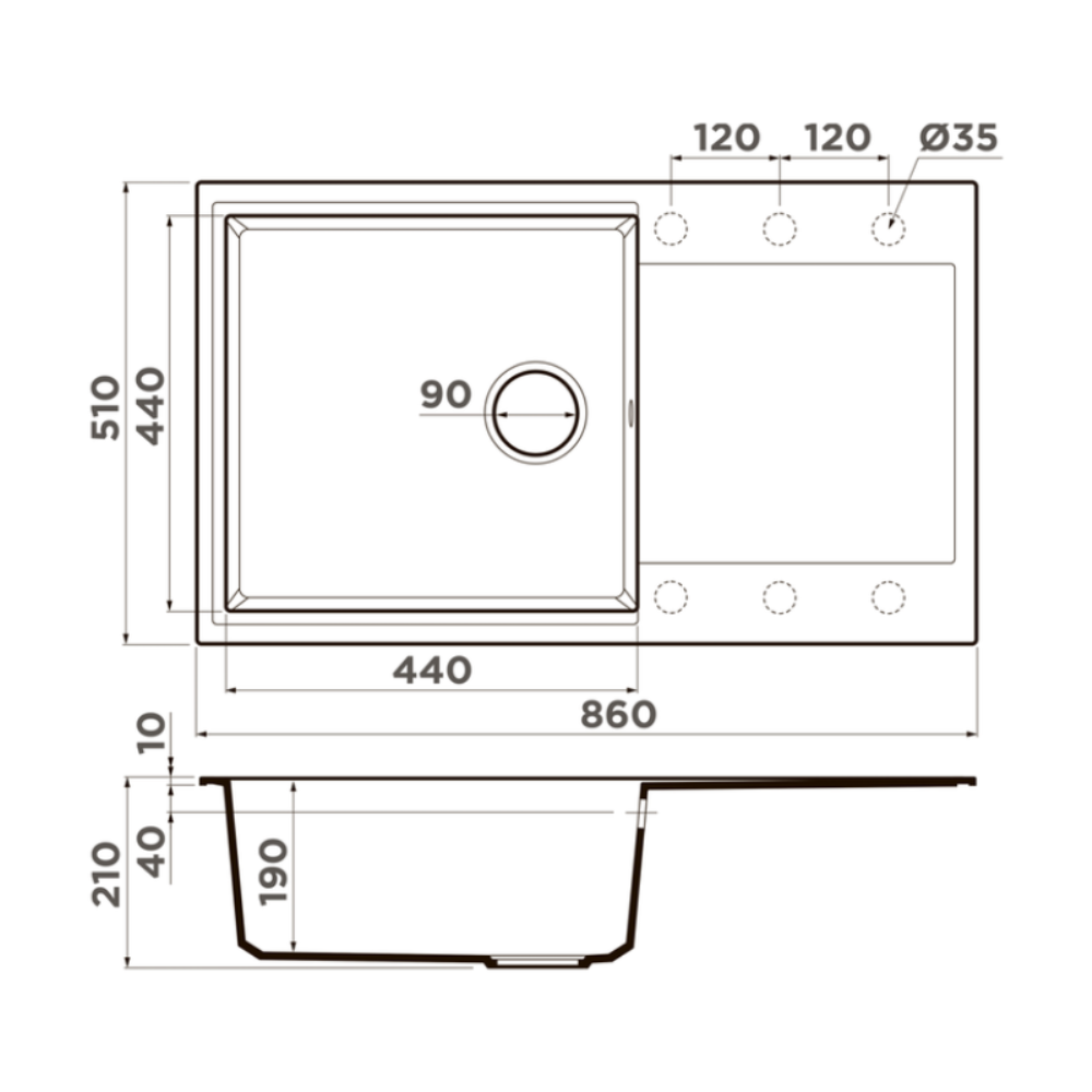 Мойка кухонная Omoikiri из коллекции Daisen 86-BE имеет размеры 860х510 мм., изготовлена из искусственного гранита. Форма — прямоугольная, одна чаша без отверстия для смесителя. Сифон в комплекте. Ширина чаши 44. Врезной монтаж. Имеется крыло.