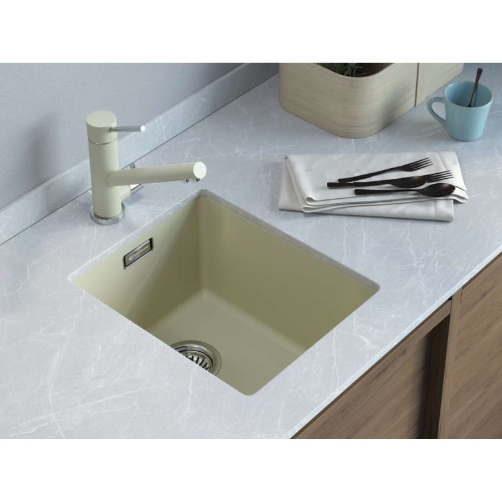 Мойка кухонная Omoikiri из коллекции Kata 34-U-SA имеет размеры 340х420 мм., изготовлена из искусственного гранита. Форма — прямоугольная, одна чаша без отверстия для смесителя. Сифон в комплекте. Ширина чаши 30. Подстольный монтаж