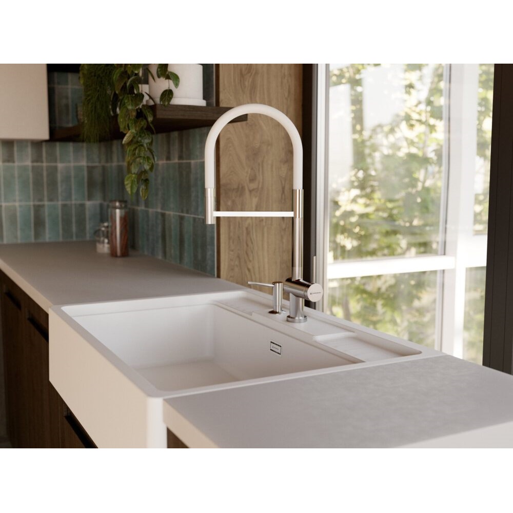 Мойка кухонная Omoikiri из коллекции Kinokawa 90-WH имеет размеры 900х635 мм., изготовлена из искусственной керамики. Форма — прямоугольная, одна чаша без отверстия для смесителя. Сифон в комплекте. Ширина чаши 84. Фронтальный монтаж.
