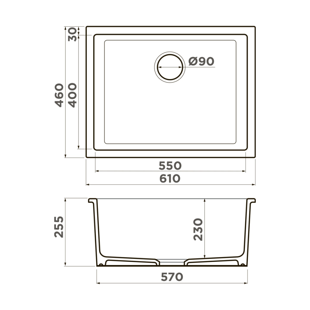 Мойка кухонная Omoikiri из коллекции Okinoshima 61-U/I-IB имеет размеры 610х460 мм., изготовлена из искусственной керамики. Форма — прямоугольная, одна чаша без отверстия для смесителя. Сифон в комплекте. Ширина чаши 55. Подстольный и врезной монтаж.