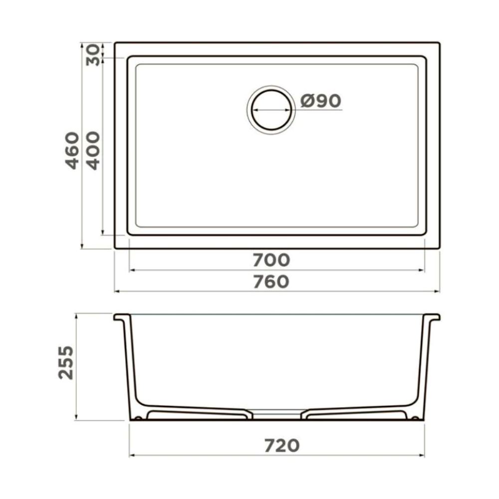 Мойка кухонная Omoikiri из коллекции Okinoshima 76-U/I-G имеет размеры 760х460 мм., изготовлена из искусственной керамики. Форма — прямоугольная, одна чаша без отверстия для смесителя. Сифон в комплекте. Ширина чаши 70. Подстольный и врезной монтаж.