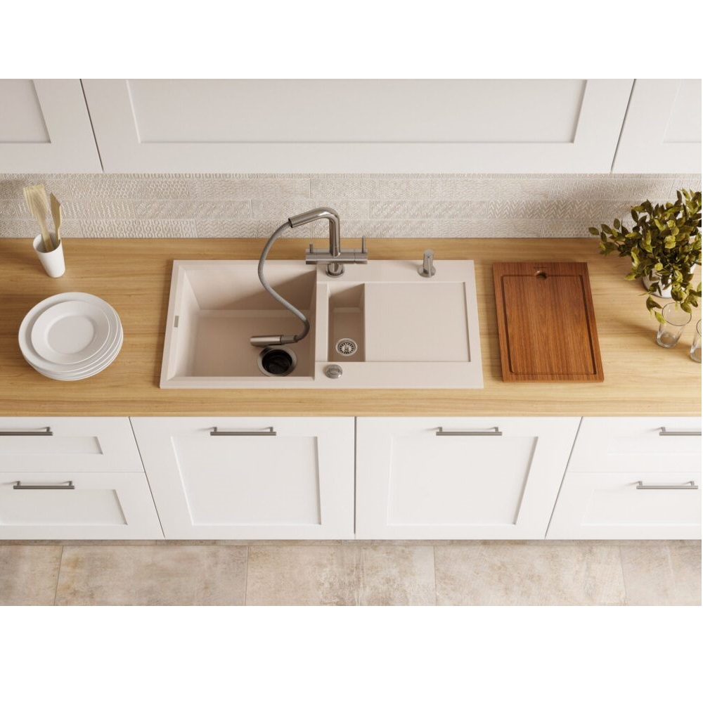 Мойка кухонная Omoikiri из коллекции Sakaime 86-2-BE имеет размеры 860х435 мм., изготовлена из искусственного гранита. Форма — прямоугольная, одна чаша без отверстия для смесителя. Сифон в комплекте. Ширина чаши 37. Врезной монтаж.
