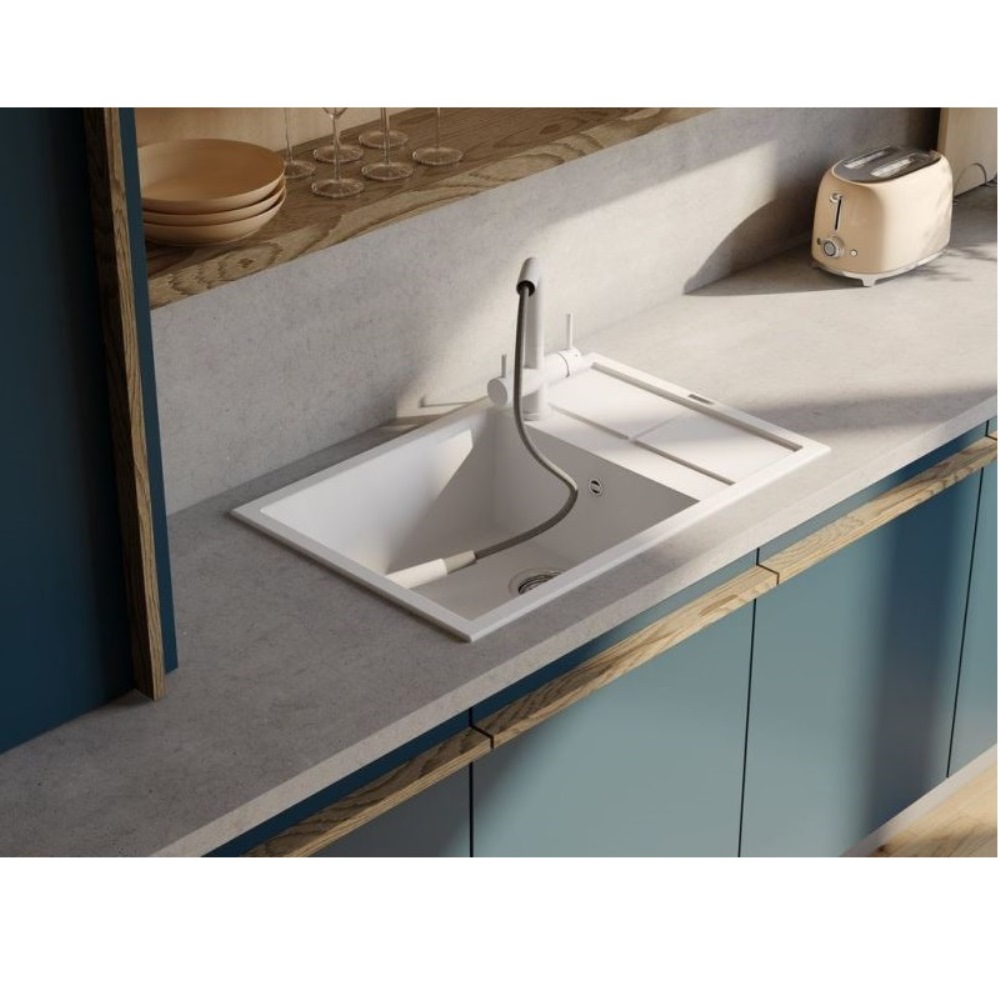 Мойка кухонная Omoikiri из коллекции Sumi 78A-LB-WH имеет размеры 780х500 мм., изготовлена из искусственной керамики. Форма — прямоугольная, одна чаша без отверстия для смесителя. Сифон в комплекте. Ширина чаши 49. Врезной монтаж. Имеется крыло.