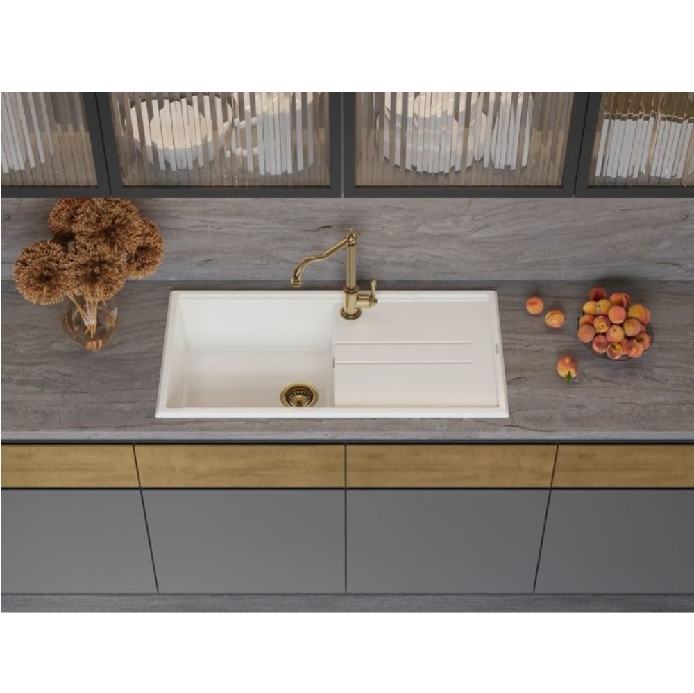 Мойка кухонная Omoikiri из коллекции Tedori 100-SA имеет размеры 1000х510 мм., изготовлена из искусственного гранита. Форма — прямоугольная, одна чаша без отверстия для смесителя. Сифон в комплекте. Ширина чаши 47,8. Врезной монтаж. Имеется крыло.