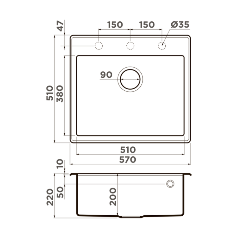 Мойка кухонная Omoikiri из коллекции Tedori 57-BL имеет размеры 570х510 мм., изготовлена из искусственного гранита. Форма — прямоугольная, одна чаша без отверстия для смесителя. Сифон в комплекте. Ширина чаши 51. Врезной монтаж.