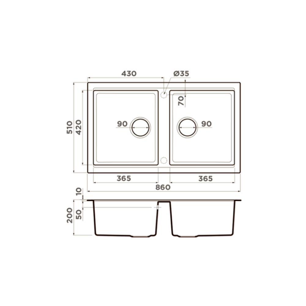 Мойка кухонная Omoikiri из коллекции Tedori 86-2-SA имеет размеры 860х510 мм., изготовлена из искусственного гранита. Форма — прямоугольная, две чаши без отверстия для смесителя. Сифон в комплекте. Ширина чаши 36,5. Врезной монтаж.