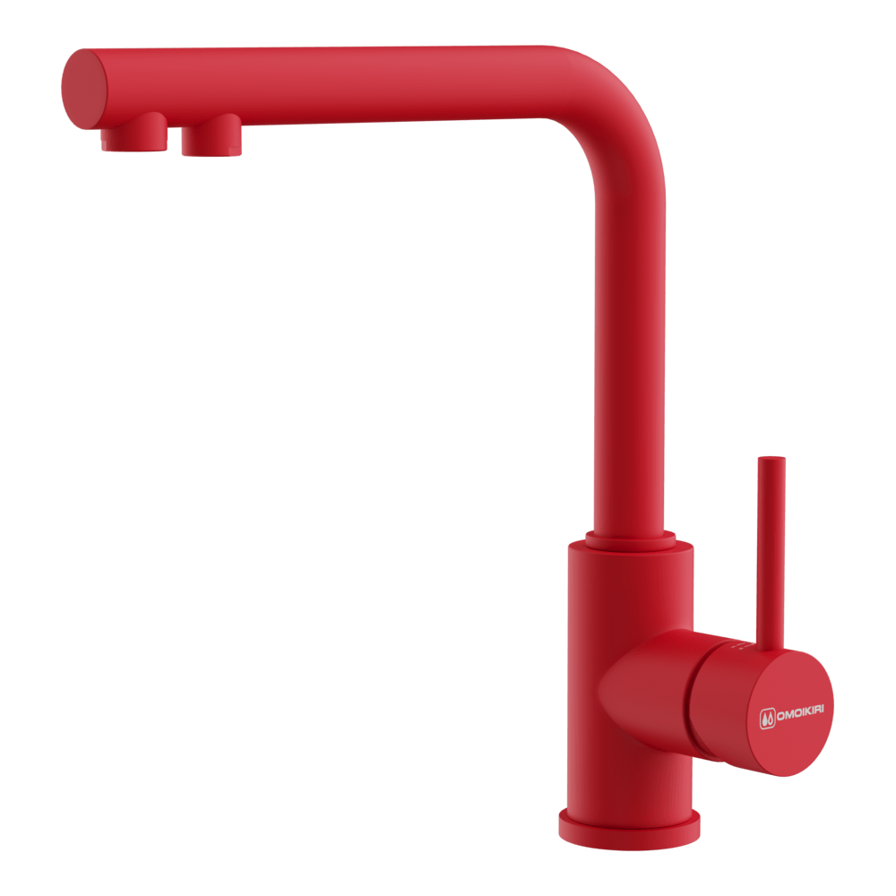 Смеситель для кухни Omoikiri Nakagawa 2 Plus с подключением фильтра оснащен рычажным управлением для регулировки температуры и напора воды. Горизонтальный монтаж на 1 отверстие. Поворотный излив 210 мм.