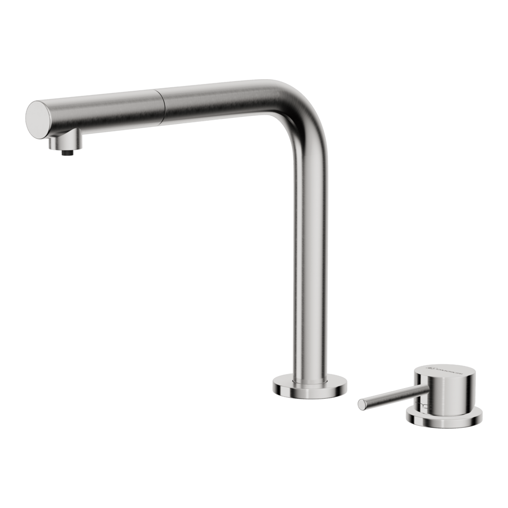 Смеситель для кухни Omoikiri Nara 2 Plus-S с подключением фильтра оснащен рычажным управлением для регулировки температуры и напора воды. Горизонтальный монтаж на 2 отверстия. Вытяжной излив 216 мм.
