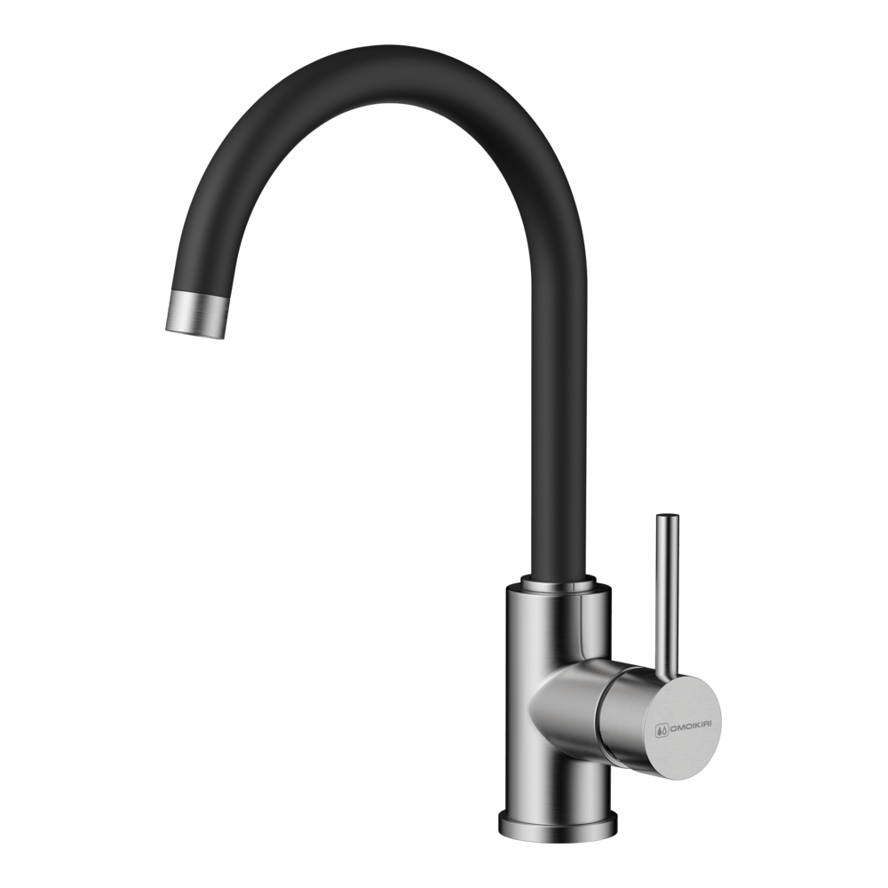 Смеситель для кухни Omoikiri Shinagawa оснащен рычажным управлением для регулировки температуры и напора воды. Горизонтальный монтаж на 1 отверстие. Поворотный излив 182 мм.