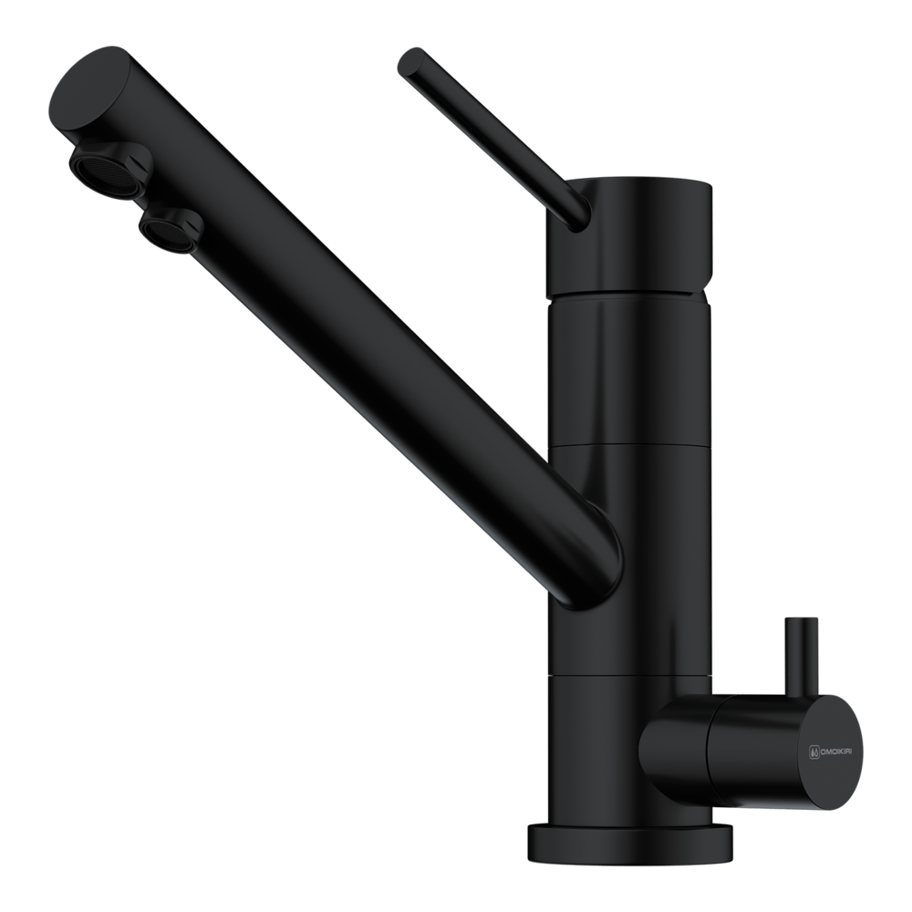 Смеситель для кухни Omoikiri Tonami с подключением фильтра оснащен рычажным управлением для регулировки температуры и напора воды. Горизонтальный монтаж на 1 отверстие. Поворотный излив 184 мм.